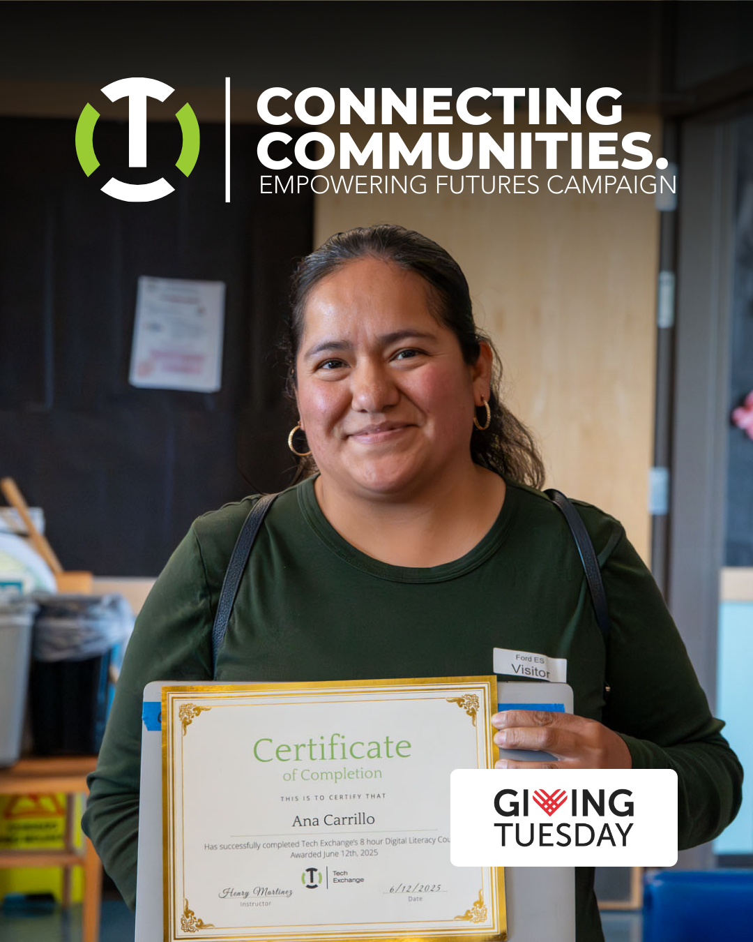 Tech Exchange provides refurbished computers, home internet enrollment, digital literacy training, multilingual tech support, youth workforce programs, and new TecHub community spaces that bring learning and connection directly to neighborhoods. This Giving Tuesday every dollar is matched up to five thousand. Your generosity fuels our mission and doubles the impact for families who need it most.