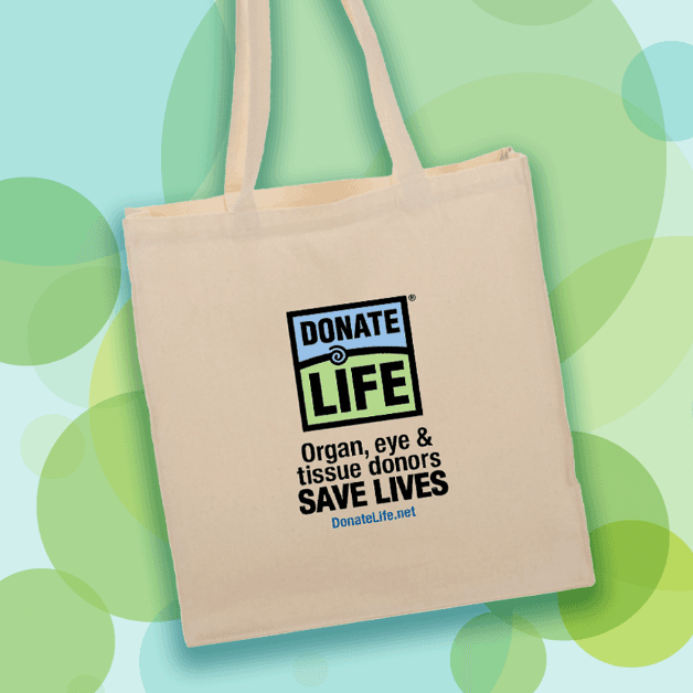 Now until the end of August, when you pledge a monthly gift of $5 or more, we will send you a Donate Life tote bag. Show your support for the cause of organ, eye and tissue donation today! More details are listed below.