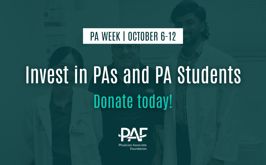 All PA Week donations support PAF's IMPACT Grant Program, which funds community-based health projects led by PAs and PA students across the United States. Make a personalized PA Week gift today and support PAs leading innovative efforts to transform health in communities nationwide!
