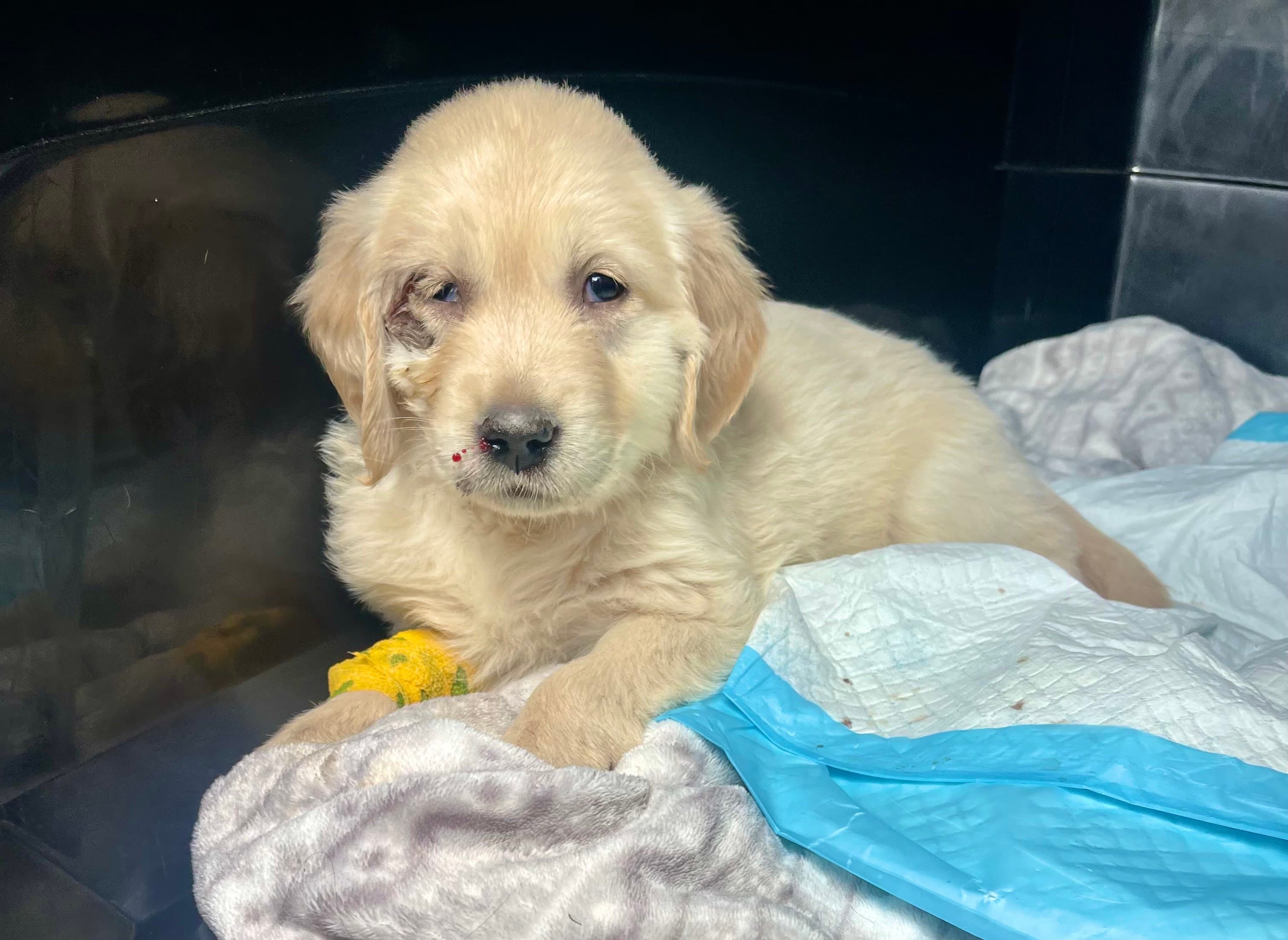 A beautiful golden retriever puppy who was in a tragic accident, Wags is now fighting for his life.
