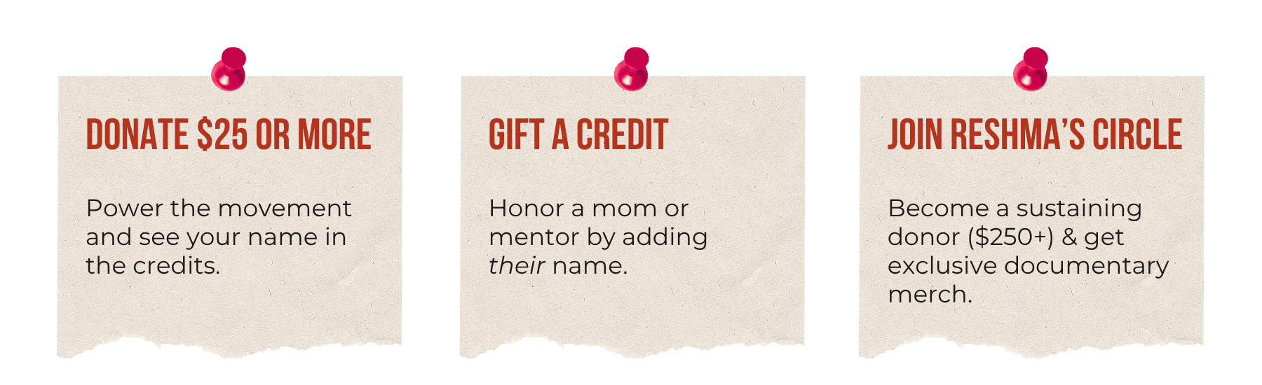 By choosing one of these three ways to fund the film, you help us build a movement, change policy, elevate mothers — and make history together: