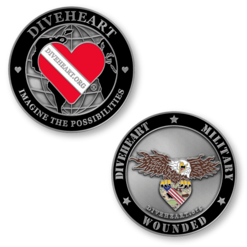 This season, we challenge you to donate $100 to support Diveheart’s Military Wounded(DMW) mission—and as a thank-you, we’ll send you an exclusive Diveheart Challenge Coin!*