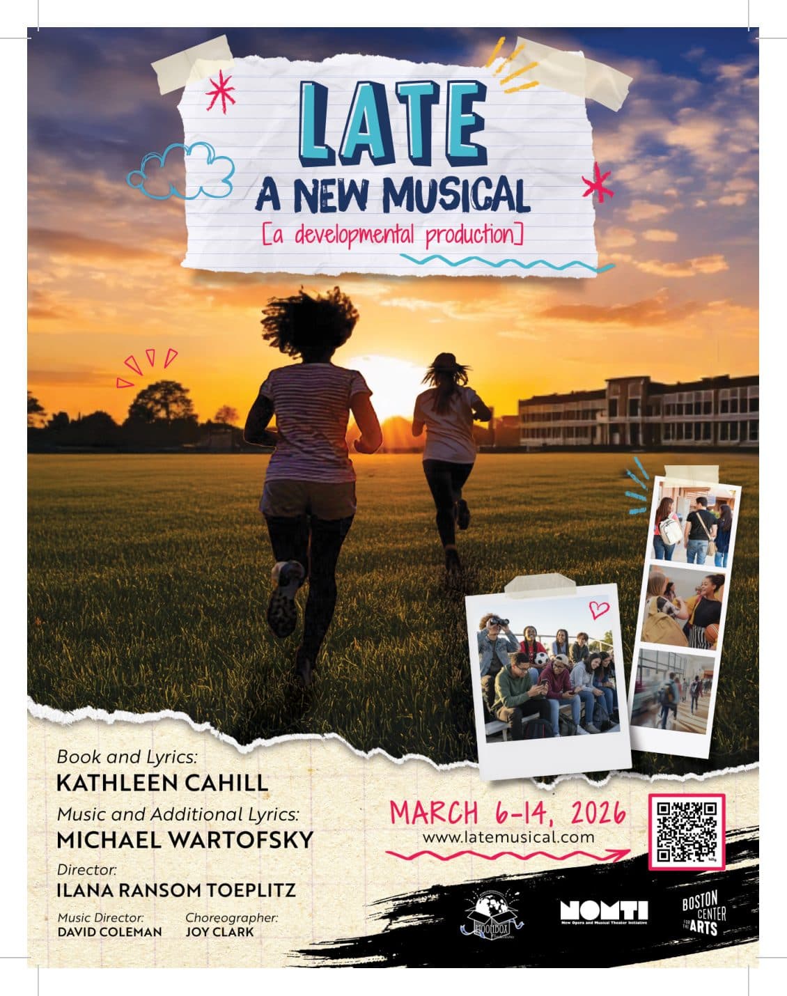 LATE A New Musical is produced in collaboration with Moonbox Productions and New Opera and Musical Theater Initiative (NOMTI)