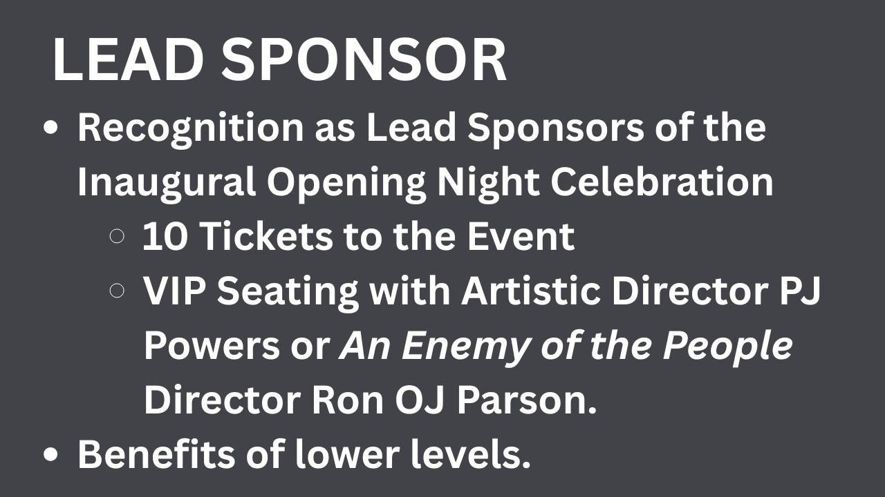 The inaugural production in our new home will be Amy Herzog’s new version of An Enemy of the People by Henrik Ibsen, directed by TimeLine Company Member Ron OJ Parson. We invite you to join the Donors Circle supporting this historic production. There is a wide variety of sponsorship levels available with benefits outlined on the following pages.