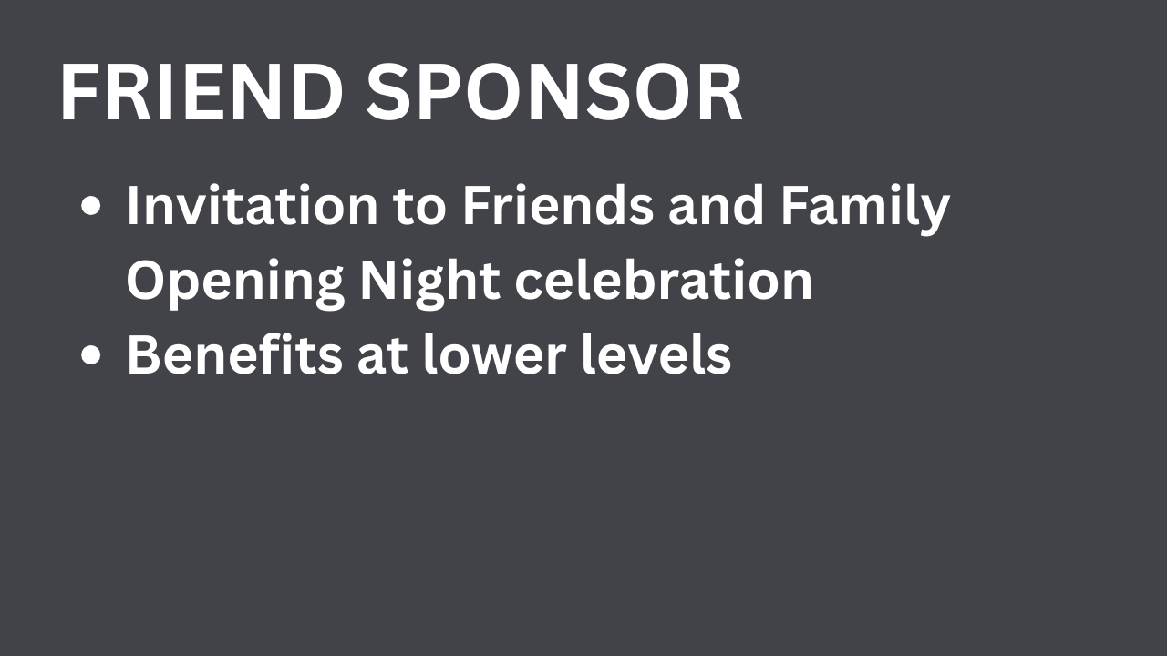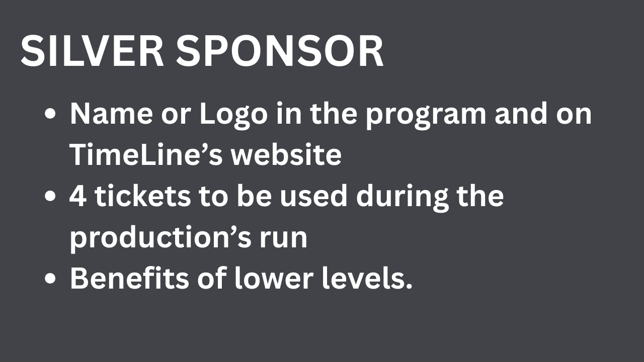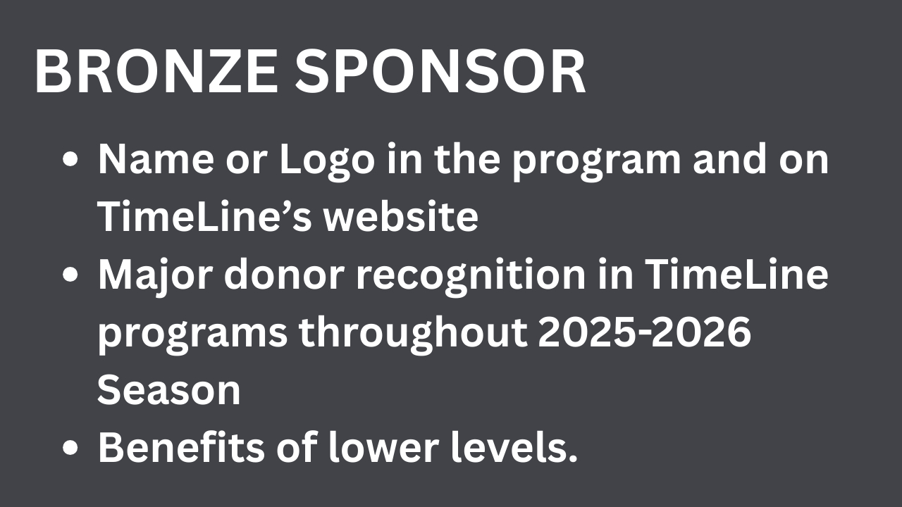 Premier sponsorship levels also include recognition in the Inaugural Opening Night Gala Celebration. Help TimeLine make this historic celebration truly spectacular!