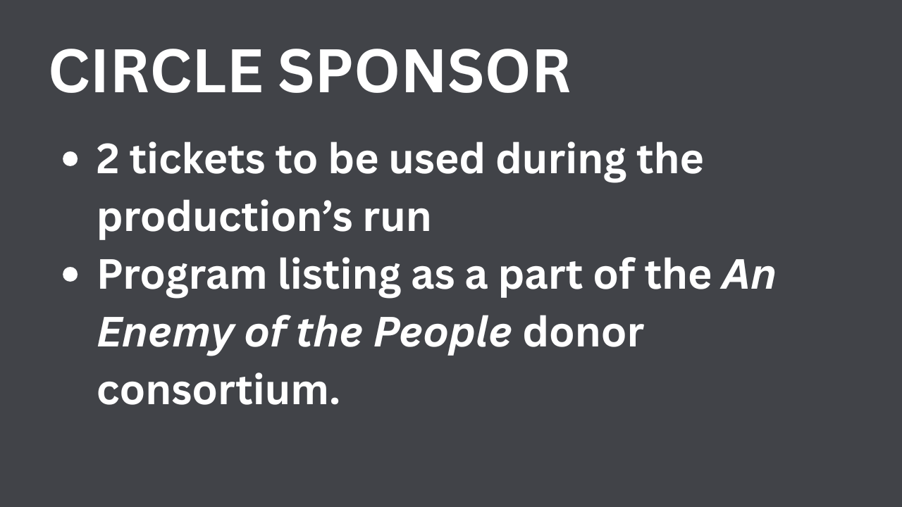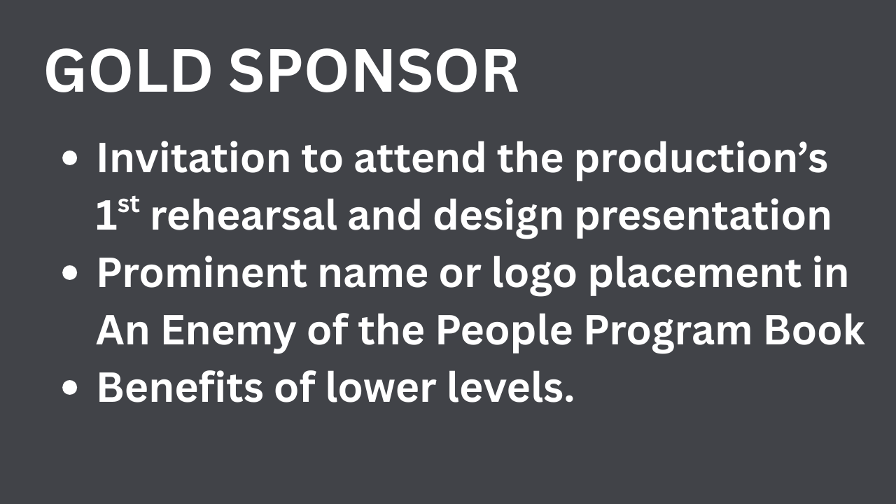 We are pleased to share a range of levels to support the production of An Enemy of the People. Donors will be recognized in Backstory magazine, online, and will be invited to special events related to the production.